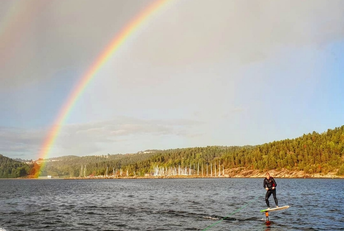 Havna, regnbuen, og... en fisk? Nei, en foilsurfer!